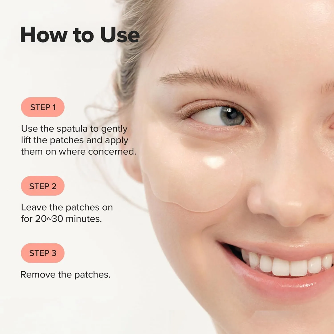 Aplica los parches sobre la piel limpia y seca, debajo de los ojos.