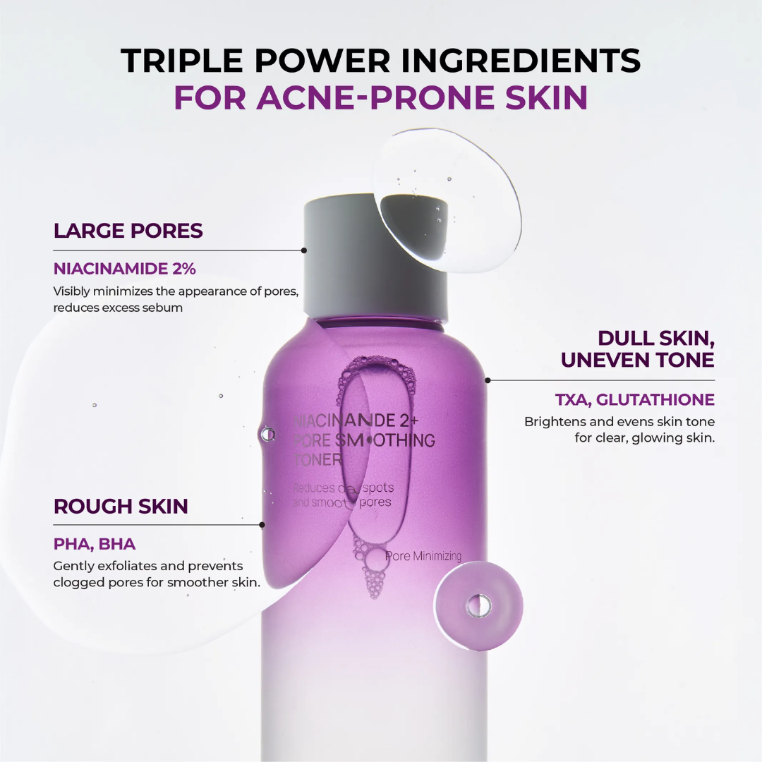 Este tónico combina niacinamida con ingredientes hidratantes y calmantes que preparan la piel para absorber mejor los productos posteriores. Ideal para quienes buscan refinar la textura, controlar el brillo, reducir poros dilatados y lograr una piel más uniforme y radiante. Su fórmula suave es perfecta para uso diario, tanto en la mañana como en la noche, sin causar irritación.