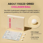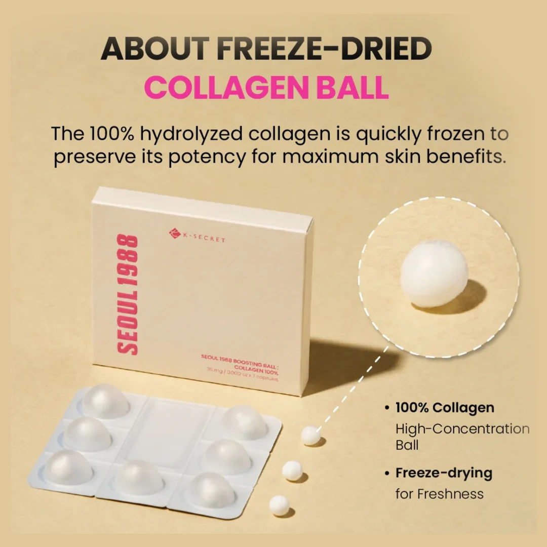 • Una 100% Collagen Ball, una esfera de colágeno puro liofilizado que se mezcla con el sérum para aportar un efecto reafirmante inmediato y mayor hidratación profunda.