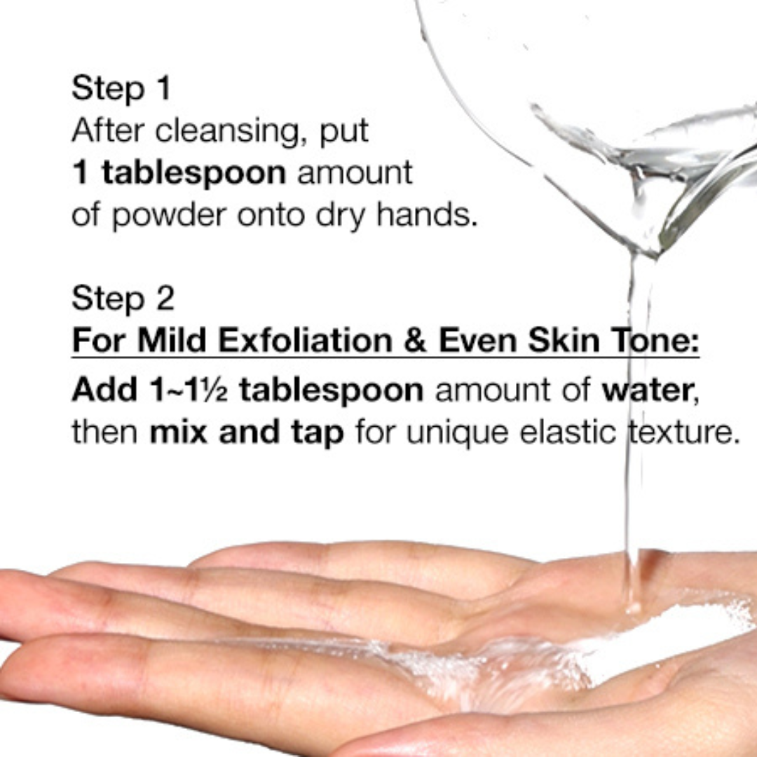 2. Se utiliza como limpiador en polvo: coloca 0,5 cucharadas de polvo sobre la palma de tu mano y mezcla con un poco de agua. Una vez que el polvo se convierta en espuma, masajea suavemente sobre el rostro. Enjuaga con agua tibia. Se puede usar día y noche.
