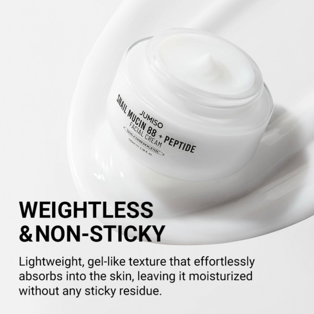 Snail Secretion Filtrate (88%), Niacinamide, Cetearyl Olivate, Sorbitan Olivate, Caprylic/Capric Triglyceride, Betaine, Cetearyl Alcohol, Butylene Glycol, Water, Triethylhexanoin, Phenoxyethanol, Cyclohexasiloxane, Carbomer, Ethyl Hexanediol, Arginine, Allantoin, Sodium Polyacrylate, Sodium Hyaluronate, Dimethicone/Vinyl Dimethicone Crosspolymer, Xanthan Gum, Panthenol, Adenosine, 1,2-Hexanediol, Copper Tripeptide-1, Palmitoyl Pentapeptide-4, Acetyl Hexapeptide-8, Palmitoyl Tripeptide-1, Palmitoyl Tetrapeptide-7