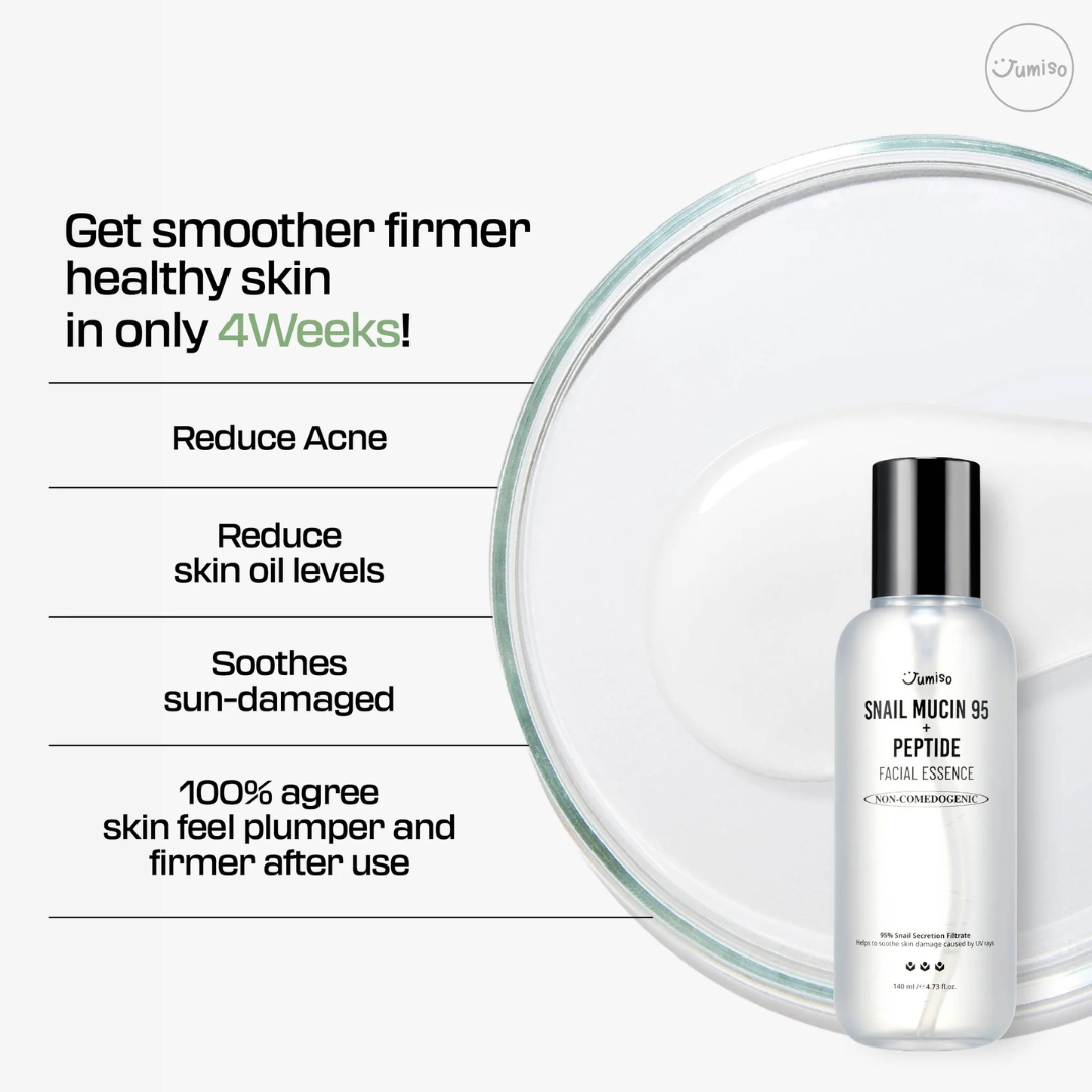 Nutre la piel cansada, sin brillo o envejecida con esta poderosa esencia tonificante infundida con 95 % de mucina de caracol y cinco tipos de péptidos para aumentar la elasticidad de tu piel y reparar el daño celular.